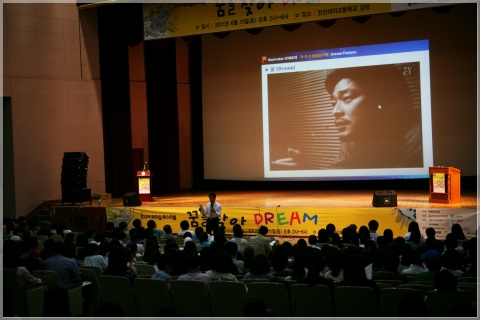 - 2011 제9회 주니어리더십페스티벌 현장, 이지성 작가가 열띤 강연을 하고 있다.
