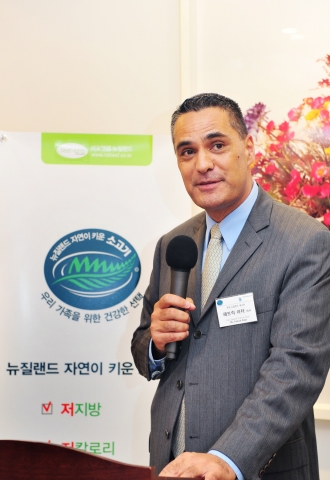 - 지난 5월 20일(화), 부산에서 열린 2014 뉴질랜드 푸드 커넥션에서 비프앤램 뉴질랜드 존 헌들비 지사장이 참석자에게 뉴질랜드 자연이 키운 소고기에 대해 설명하고 있다.