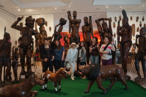 - 경상남도 문화예술회관 제2전시실에 마련된 아프리카야 놀자 展 에 온 관람객들이 아프리카 원주민에게 전시작품에 대한 자세한 설명을 듣고 있다.