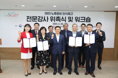 - KRISO 사회공헌 활동 참여자들이 기념 촬영을 하고 있다