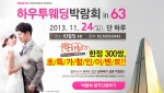 예비부부들은 결혼준비만 생각해도 스트레스를 받는다. 하여 예비부부들을 위해 ‘하우투웨딩’과 ‘웨딩애비뉴’는 예비부부들에게 결혼준비를 보다 쉽고 알차게 하실 수 있도록 2013년 마지막 웨딩박람회를 개최한다고 한다. 12월 28일 ~ 29일 63빌딩에서 개최되는 이...