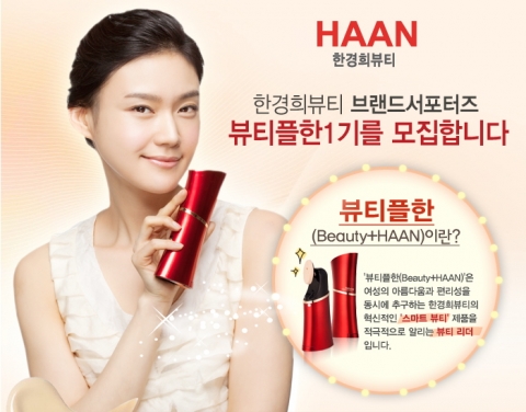 - 한경희뷰티의 스마트 뷰티 브랜드 ‘한경희(HAAN)’가 브랜드 서포터즈 ‘뷰티플 한(HAAN)’ 1기 50명을 오는 26일까지 모집한다.