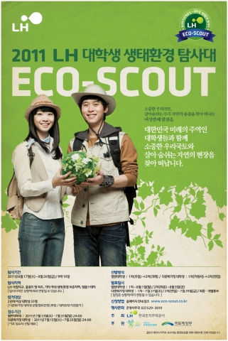- LH(한국토지주택공사)는 “2011 LH 대학생 생태환경 탐사대회”에 참여할 탐사대(eco-scout)를 모집한다
