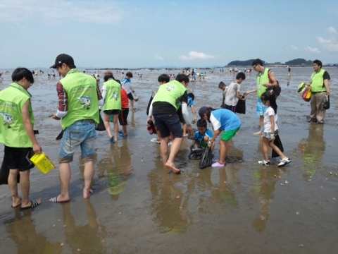 - 지역아동센터와 사회복무요원이 독산해수욕장에서 밀조개 체험하며 한마음 대회를 진행했다.