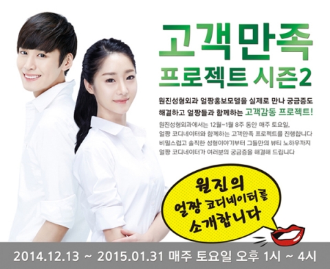 - 원진성형외과에서는 얼짱홍보모델을 실제로 만나 궁금증도 해결하고 얼짱들과 함께하는 고객감동 프로젝트가 진행 중이다.