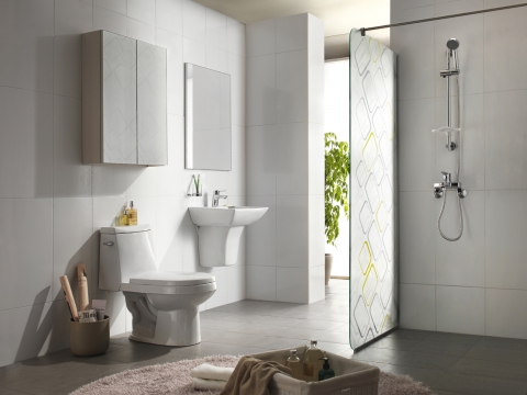 - 대림바스의 쇼룸 내 절수과학존. 절수형 양변기를 사용하면 물이 얼만큼 절약되는 지 한 눈에 알아볼 수 있다.