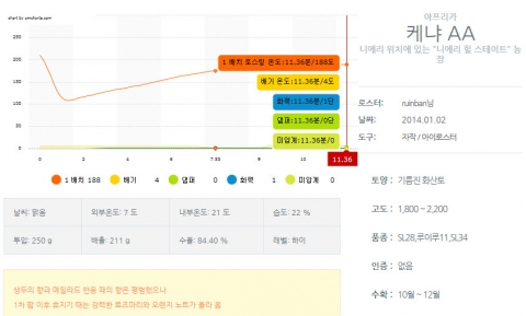 - 케냐에서 생산된 생두로 만든 로스팅 프로파일 예시이다.