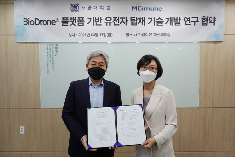 - 왼쪽부터 엠디뮨 배신규 대표, 서울대학교 오유경 교수