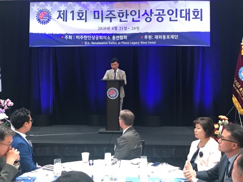 - 왼쪽부터 바인테크 김학기 대표, 미주한인상공회의소 총연합회 김원걸 부회장