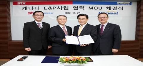 - (왼쪽부터) 석유공사 임홍근 부사장, 하베스트 이명헌 사장, STX에너지 이병호사장, 변희옥 부사장
