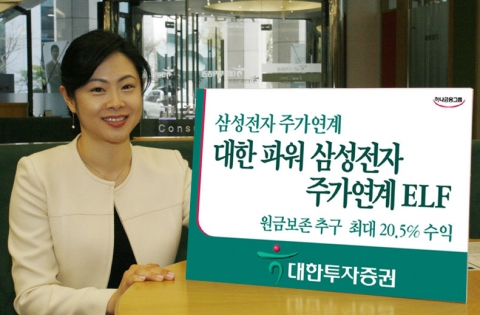 - 하나금융그룹 대한투자증권(사장 金正泰)은 삼성전자 주가와 연계한 원금보존 추구형 ‘대한파워 삼성전자 주가연계 ELF 펀드’를 6월1일까지 모집 판매한다고 밝혔다.