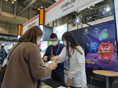 - 2021 넥스트콘텐츠페어에서 전남콘텐츠기업육성센터 지원기업 애니듀가 현장 홍보활동을 진행하고 있다