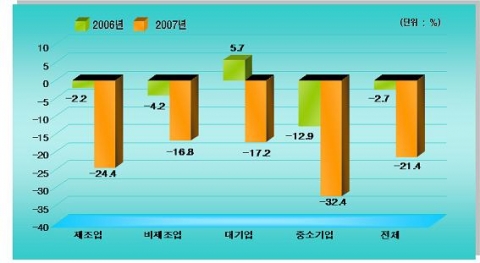 - 정규․비정규직 채용 비중 추이(2003~2007년)