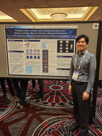 한림대 동탄성심병원의 김재호 교수가 미국 라스베이거스에서 열린 북미뉴로모듈레이션학회(NANS) 연례미팅에서 포스터 발표를 하고 있다
