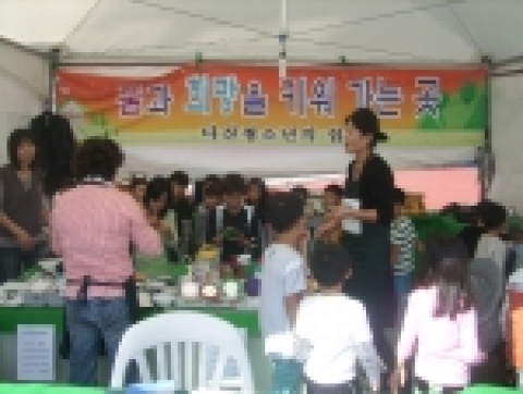 - 생일잔치에 참여한 청소년을 격려하는 장면