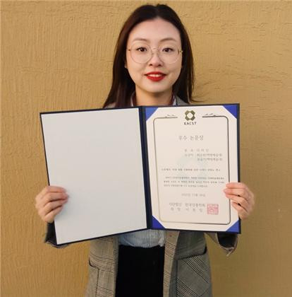 - 2020년 한국상품학회 추계학술대회에서 우수상을 받은 백제예술대학교 한류예술과 최승원 학생