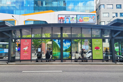 - 아트마켓 부스 전시장 앞에 참여 단체들의 작품 포스터들이 전시돼 있다