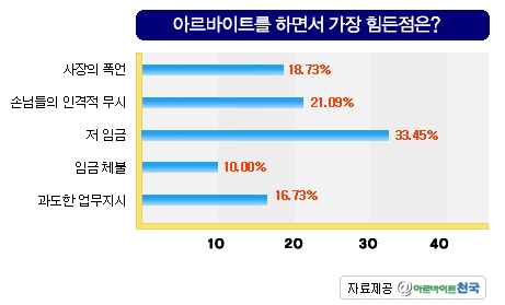 - "아르바이트를 하면서 가장 힘든점"조사결과