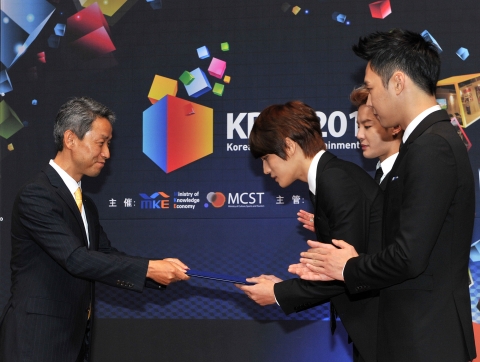 - 신입사원과 임원이 팀으로 제작한 ‘한국타이어 2020 비전’ UCC 중 우승을 거머쥔 신입사원들이 한국타이어 대표이사 서승화 부회장과 함께 UCC 경연 1등을 기념하고 있다.