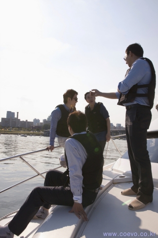 - ▲세이프텍(주)에 대한 설명중인 이 대표와 경청하고 있는 오군.