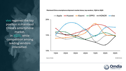 Omdia, 중국 본토 스마트폰 시장 3분기 3% 감소… 경쟁 심화 속 비보 1위 탈환