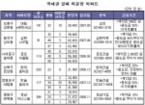 ■ 서대문구 홍제동 금호어울림 = 지상 15층 2개 동 36평~56평형 총 119가구로 이뤄져 있다. 지하철 3호선 무악재역이 걸어서 3분 거리에 있고, 단지 앞 의주로를 통해 일산 및 서울 중심부로 이동이 용이하다. 단지 주변에 대신중고, 배화중고, 한성과학고가 가까워 교육여건이 좋고, 단지주변에 인왕산 독립공원, 사직공원 등이 있어 주거환경도 쾌적하다. 현재 45평형 8가구, 48평형 5가구, 56평형 1가구가 미분양분으로 남아있다. 계약금은 평형에 관계없이 2,000만 원이고, 중도금 40% 무이자 대출이 가능하다. 분양가는 45평형이 5억 2,810만 원, 48평형이 5억 6,320만 원, 56평형이 6억 6,620만 원이고, 입주는 2006년 6월 예정이다.