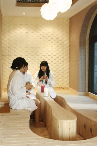 3.3 5.5 모인 사람들은 따뜻한 차 한잔을 마시며 다 함께 족욕을 즐기고 자신의 체질과 몸 상태에 맞는 스파트리트먼트를 선택한다. 각자의 룸에서, 혹은 단체룸에서 시원한 마사지를 받고 나면 몸과 마음은 한결 릴랙스해지고 뭉쳤던 근육은 부드럽게 풀린다. 한 달간 업무에 시달렸던 몸과 마음에 평안과 휴식을 제공하는 시간이다.