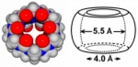 신물질 쿠커비투릴(cucurbituril)은 둥글고 넓게 퍼진 호박과 모양이 비슷해서 붙여진 이름이다. 위아래가 뚫려있는 거대고리 화합물로 속이 텅빈 나무술통처럼 생겼다. 즉 분자로 만들어진 아주 작은 통이다. 쿠커비투릴의 빈 공간에는 다양한 분자나 이온을 담을 수 있으며, 위와 아래쪽에는 카르보닐기가 있어 유기 암모늄 이온이나 알칼리 금속 이온을 강하게 붙잡을 수 있다.
