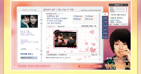 ‘김혜수의 빛나는 눈물’로 화제가 되었던 포스터 스킨이 시선을 잡아 끄는 <열한번째 엄마> 미니홈피의 메인 메뉴는 ‘열한번째 엄마’ 김혜수와 그런 새엄마가 너무 못마땅한 소년이 각각의 이야기를 보여주는 사진첩이다. 어린 아들에게 왕빈대 붙는 이상한 새엄마와, 이미 열 명의 엄마를 거쳐온 아이가 만나 미워하고, 이해하고, 사랑하게 되는 과정을 각각의 시선으로 풀어낸 사진첩은 보는 이들의 마음까지 따뜻하게 만들어 준다.