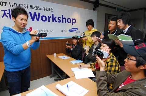 삼성전자는 지난 10월 31일 한국방송영상산업진흥원에서 “2007 뉴미디어 트렌드 워크샵”을 개최했다. 삼성전자의 디지털캠코더 신제품 VM-MX10 출시를 기념하여 개최된 이번 워크샵에는 판도라TV기자단과 삼성캠코더 UCC 체험단이 참석했으며 강사진으로는 전 SBS PD 출신으로 현재 인터넷 방송국을 운영하고 있는 김경만 PD와 영상편집 전문 강사인 김철현 강사가 나섰다.