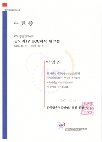 이날 교육에 참가한 한 수강생은 “촬영 기법이나 저작권 등 평소 쉽게 배울 수 없었던 내용들에 대해 실무 경력이 많은 강사들에게 노하우를 듣다 보니 많은 도움이 됐다”며 “이번 강의로 인해 앞으로 어떻게 UCC를 만들어야 하는지 정확히 알게 되는 좋은 계기가 되었다”고 말하며 교육 후 제공되는 수료증을 들고 즐거워했다.