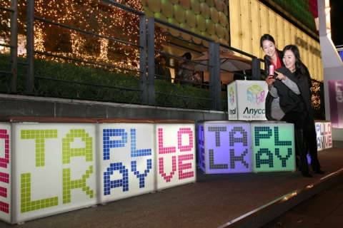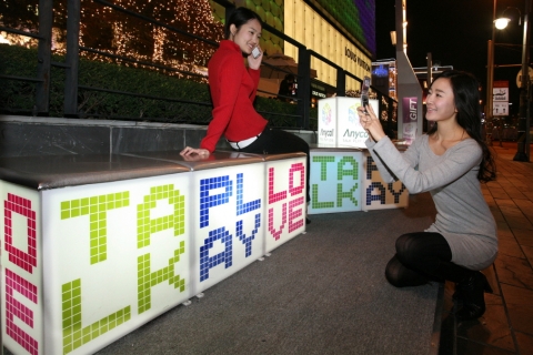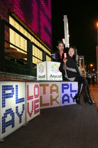 압구정동 G백화점 앞 애니콜 ‘Talk, Play, Love’ 벤치 설치