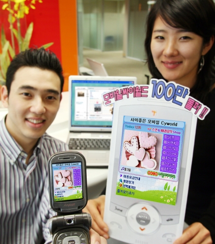 SK텔레콤(사장 金信培, www.sktelecom.com)은 인터넷 커뮤니티 서비스 ‘싸이월드’를 휴대전화에서 이용할 수 있는「모바일 싸이월드」의 월 이용자 수(UV)가 100만을 돌파했다고 14일 밝혔다.