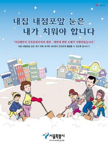 금년에도 대시민 홍보를 대대적으로 시행하여 『내 집앞, 내 점포앞 눈치우기』를 정착하고자 할 계획이다.