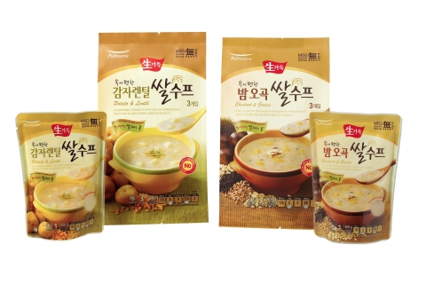 국산 감자와 세계적인 건강 음식으로 손꼽히는 렌틸콩이 어우러져 부드럽고 고소한 ‘감자렌틸 쌀수프’, 밤, 흑미, 수수, 율무, 보리, 현미 등 오곡의 건더기가 들어있어 더욱 든든한 ‘밤오곡 쌀수프’ 등 2종으로 속에 부담이 없고 영양이 풍부해 아침 식사 대용이나 어르신들, 수험생의 간식으로 좋다.