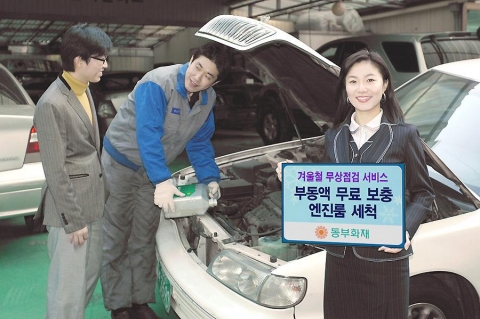 동부화재 자동차보험에 가입한 고객이면 누구나 이벤트 기간 동안 부동액 무료 보충(1리터 이내), 타이어 공기압 점검, LPG차량 점화장치 진단 등 겨울철 중점관리 항목에 대한 무료서비스와 엔진 룸 세척 등 36가지(프로미카서비스 특약 미 가입고객은 20가지)의 차량 안전점검을 무상으로 받을 수 있다.