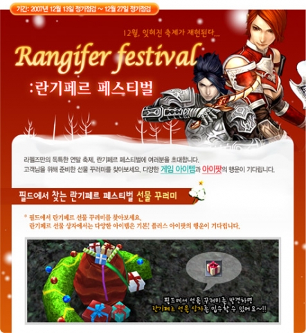 라펠즈의 크리스마스 이벤트에 대한 보다 자세한 소식은 라펠즈 공식 홈페이지(www.Rappelz.com)에서 확인할 수 있다.