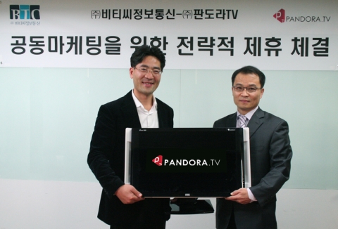 이날 제휴식에는 판도라TV 김경익 사장과 비티씨정보통신 김성기 사장이 참석한 가운데 전략적 제휴를 체결했으며, 양사는 이를 시작으로 ‘판도라TV’ LCD 모니터에 대한 개발 및 유통과 판매는 비티씨정보통신이, 그리고 제품의 홍보와 마케팅은 판도라TV 측에서 담당하기로 했다.