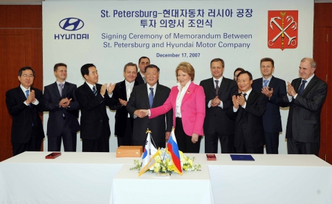 이에 대해 발렌티나 마트비옌코 주지사는 “세계시장에서 글로벌 브랜드로 도약하고 있는 현대차의 공장을 상트 페테르부르크에 유치하게 돼 기쁘다”며, “앞으로 적극적인 지원을 통해 상호 발전해 나갈 수 있도록 하겠다”며 협조를 약속했다.