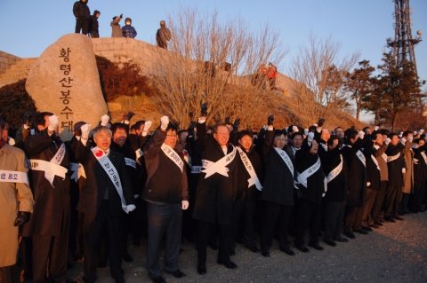 이날 부산은행 임직원들은 황령산봉수대에서 올 들어 가장 추운 체감온도 영하 20도의 매서운 겨울바람에도 불구하고 2008년도 슬로건인 “고객속으로”를 외치며 뜨거운 결의를 다졌다.