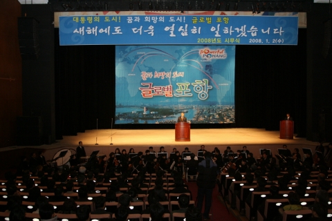 이에 앞서 포항시는 2일 오전 8시부터 30분간 박승호 포항시장을 비롯한 6급 이상 간부공무원 전원이 대잠사거리와 형산로타리, 육거리 등지에서 ‘새해에도 더욱 열심히 일하겠습니다’, ‘새해에도 더욱 정성껏 섬기겠습니다.’라는 프랭카드를 들고 시민들에게 인사를 건네며 시민을 섬기겠다는 각오를 다졌다.
