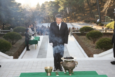 시민들에게 인사를 마친 박 시장은 오전 8시 30분 충혼탑(수도산)을 참배했다.