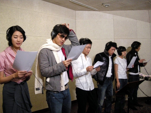 올밴의 우승민이 작사,작곡은 물론 직접 노래까지 불러 화제가 되었던 라듸오데이즈 로고송을 이제는 <라듸오데이즈> 주인공들의 목소리로 들을 수 있게 되었다. 지난 1월 9일(수) 강남의 한 스튜디오에서 진행된 라듸오데이즈송 녹음 현장은 이른 아침부터 로고송 작사작곡가인 우승민과 <라디오데이즈>의 주인공들로 북적거렸다. 라듸오데이즈 로고송은 쉽고 유쾌한 멜로디와 중독성 강한 노랫말로 되어있어 오랜만에 한자리에 뭉친 라듸오데이즈팀은 스튜디오에 도착하자마자 딱 3번 로고송을 듣더니 모두들 멜로디를 다 외워버렸다. 녹음실로 들어간 라듸오데이즈팀은 경쾌한 멜로디에 맞춰 ‘즉석안무’도 맞춰가며 똘똘 뭉친 그들의 팀웍을 과시하기도 했다. 이날 로고송 녹음 프로듀서인 우승민은 평소 웃긴 모습은 온데 간데 없이 녹록치 않은 경력을 가진 영화계 선배들임에도 불구하고 한번에 모두를 휘어잡는 강력한 음악인의 카리스마를 발산해 새로운 면모를 보이기도 했다. 배우들이 직접 부른 라디오데이즈 로고송은 곧 핸드폰 벨소리로 출시 될 예정이며, 그 수익금의 일부는 불우이웃돕기 성금으로 기탁될 예정이라 훈훈함이 두 배가 되고있다.