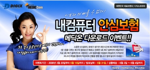 디직스가 진행하는 이번 이벤트는 선각의 "메딕온"이라는 3초 복구 솔루션을 디직스공식 홈페이지 이벤트 페이지를 통하여 다운로드 받아 설치하는 것으로 마지막 설치가 끝난 뒤 윈도우를 실행시 이벤트 등록 창이 자동으로 뜨게되는데 고객의 간단 정보를 입력하면 이벤트를 참여할 수 있다.