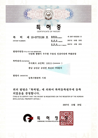 그러나 그럼에도 불구하고 구매고객의 지속적인 재구매와 건강회복의 입소문과 더불어 코인텍 자체 대량생산기술 특허 등록으로 인해 해외시장의 활로가 개척된 것이다.