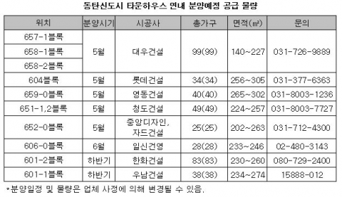 인천 청라지구에는 분양가상한제가 적용되면서 분양가가 저렴한 중소형 아파트들이 대거 공급될 예정에 있어 수요자들의 관심을 한 몸에 받고 있는가 하면, 경기 동탄신도시에는 대우건설·롯데건설 등 6개 업체가 동시에 타운하우스를 분양할 계획에 있어 이목이 집중되고 있다.