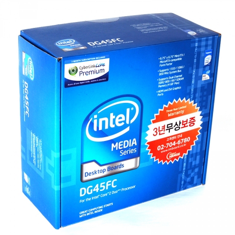 DG45FC 메인보드는 G45 노스브릿지 칩과 ICH10R 사우스브릿지 칩의 조합으로 만들어졌다. G45 칩에는 GMA X4500HD 내장그래픽이 내장되어 있다. X4500HD 내장그래픽은 전세대 코어인 GMA X3500에 비해 1.5배 강화된 3D 가속 성능과 H.264 등 하이엔드 코덱을 하드웨어적으로 가속하는 기능을 담고 있다. 이제 내장그래픽으로도 3D 게임과 블루레이 영화를 마음껏 즐길 수 있게 된 것이다.