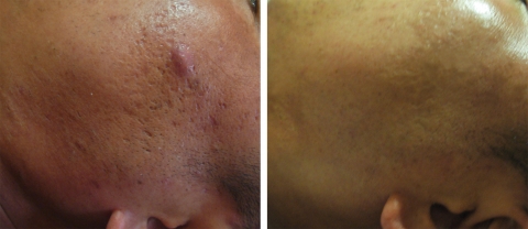 이미 여드름이 끝난 후 남아있는 영광의 상처인 여드름 흉터는 MTS나 고주파등과 같은 진피재생치료로 개선이 가능하고 과도한 여드름 압출로 인하여 모세혈관이 심하게 파열된 경우나 색소침착이 되어버린 경우에는 IPL레이져나 알라딘필링, 비타민치료등을 통한 색소및 미백치료를 권장한다.