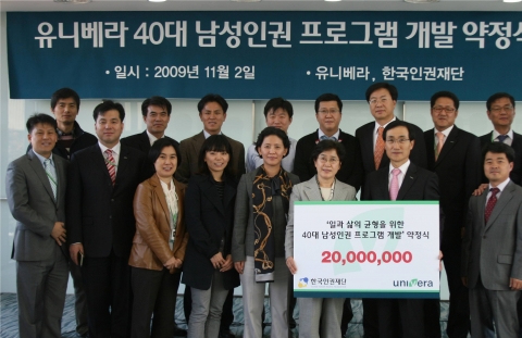 이번 약정식에 앞서 유니베라는 한국인권재단과 서강대학교 정유성 교수와 함께 인권경영의 일환으로, ‘한국의 40대 직장 남성의 생활 인권’ 연구를 공동으로 진행한 바 있다.