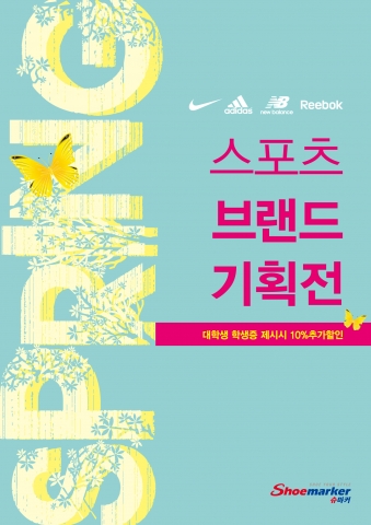 이번 행사에 글로벌 스포츠 브랜드들의 러닝화, 농구화 등을 최고30% 할인되는 가격으로 만나볼 수 있으며, 학생증 제시하는 대학생에게는 10% 추가할인을 하는 행사도 같이 진행하고 있다.